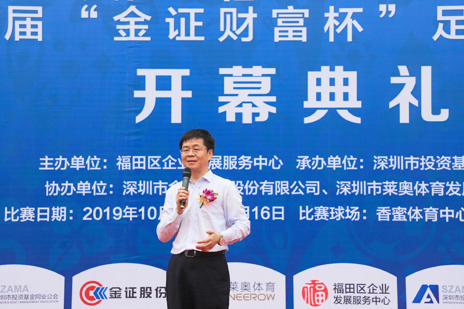 金證股份執(zhí)行總裁徐岷波在致辭中表示,“金證財富杯”足球賽從前兩年的16支參賽球隊,發(fā)展到本屆的32支,參賽規(guī)模和品牌影響力越來越大。在此,對主辦方和參賽球隊的支持致以衷心感謝。