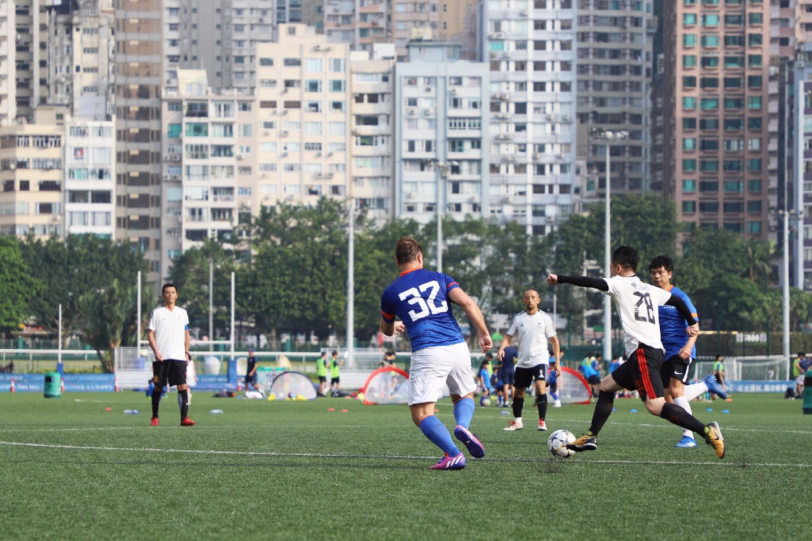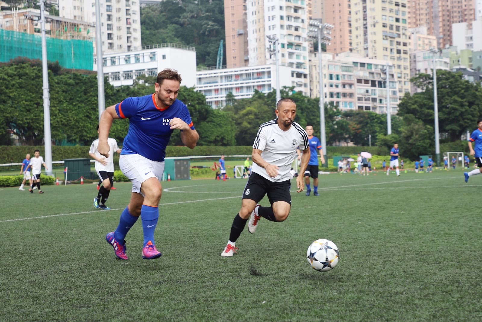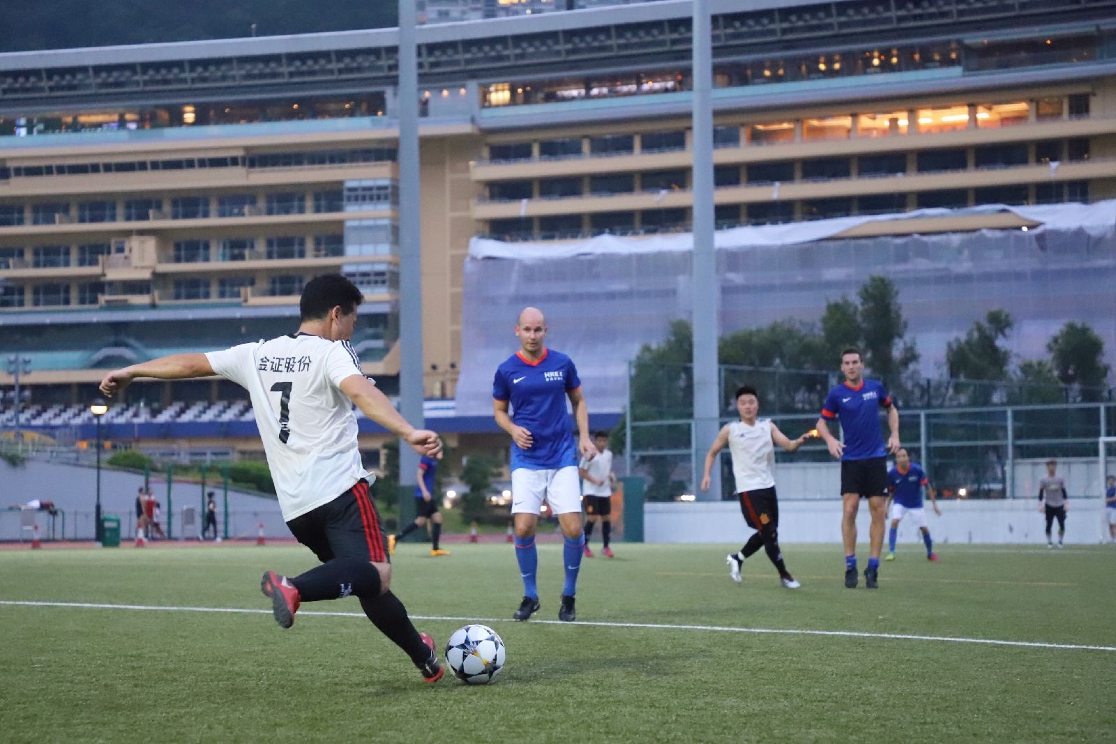 8月10日下午,香港灣仔區跑馬地足球場熱鬧非凡,由港交所和金證股份共同主辦的“2019年港交所VS金證股份足球友誼賽”正在如火如荼地進行。港交所集團行政總裁李小加先生、金證股份董事長趙劍先生親自率隊馳騁綠茵場,切磋球技,共話友誼。