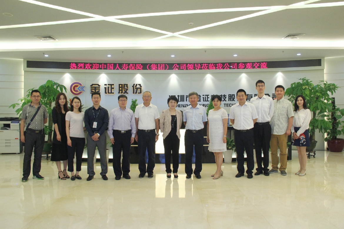 近日,中國人壽養老保險股份有限公司副總裁白平一行蒞臨金證股份進行參觀考察。金證股份執行總裁徐岷波、總裁助理荊曉珊等公司領導陪同考察。